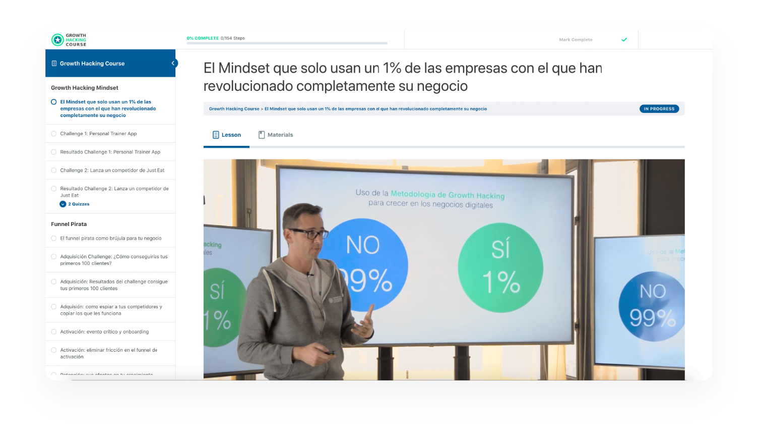 Cada uno de los challenges te pondrá en el centro de un caso real donde experimentarás algo que ya jamás olvidarás: el MINDSET Growth Hacker.